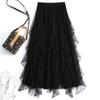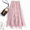 Spódnica midi z siateczki z gazy i koralików wiosenno-letniej sukience w kształcie litery A, o nieregularnym kroju, z wysokim stanem