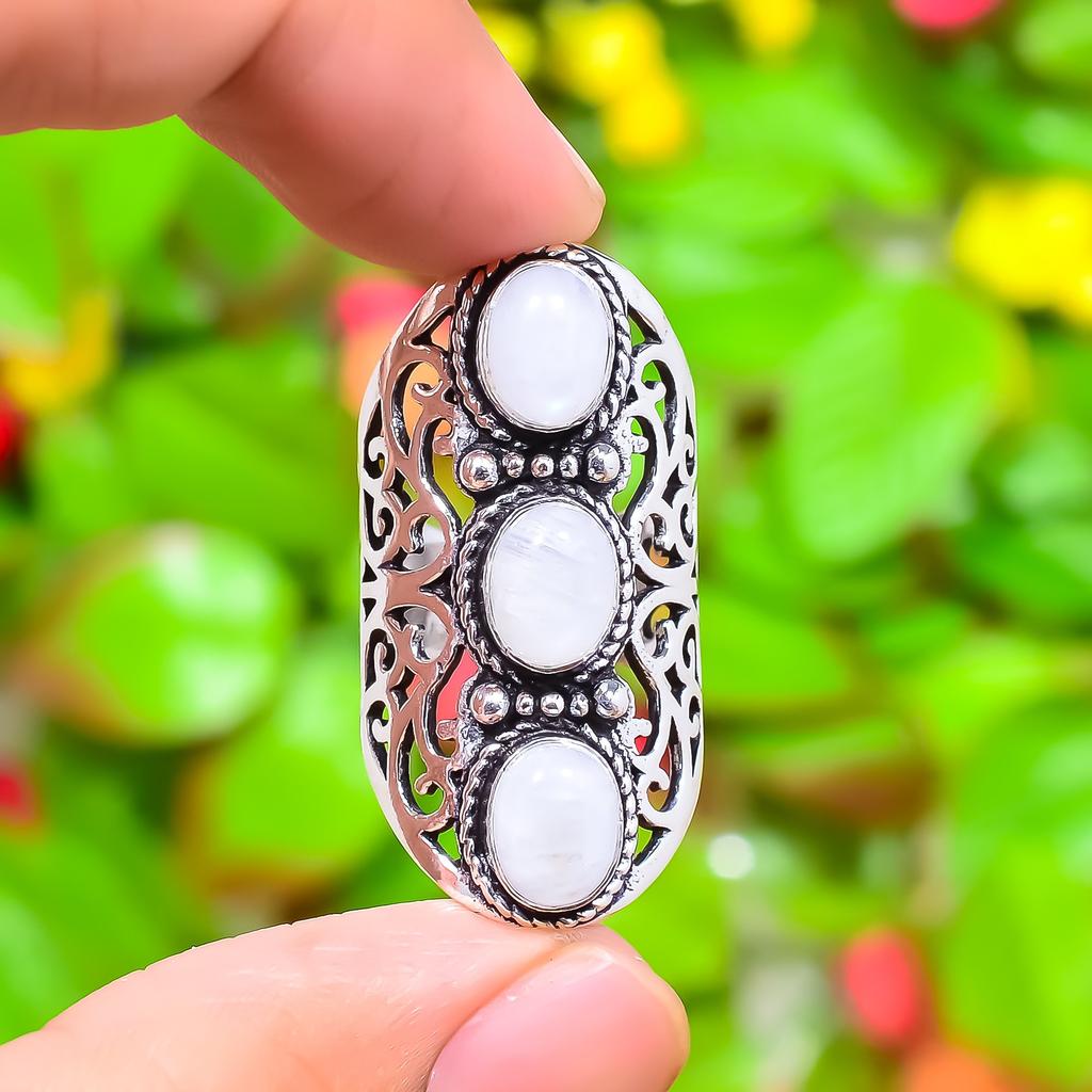 Naturalny kamień księżycowy tęczowy Pierścionek ze srebra próby 925 Rozmiar 6.5 S1s52