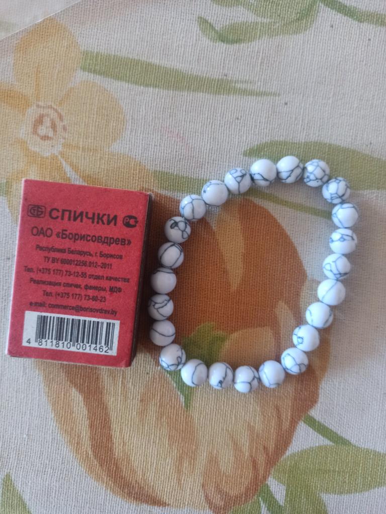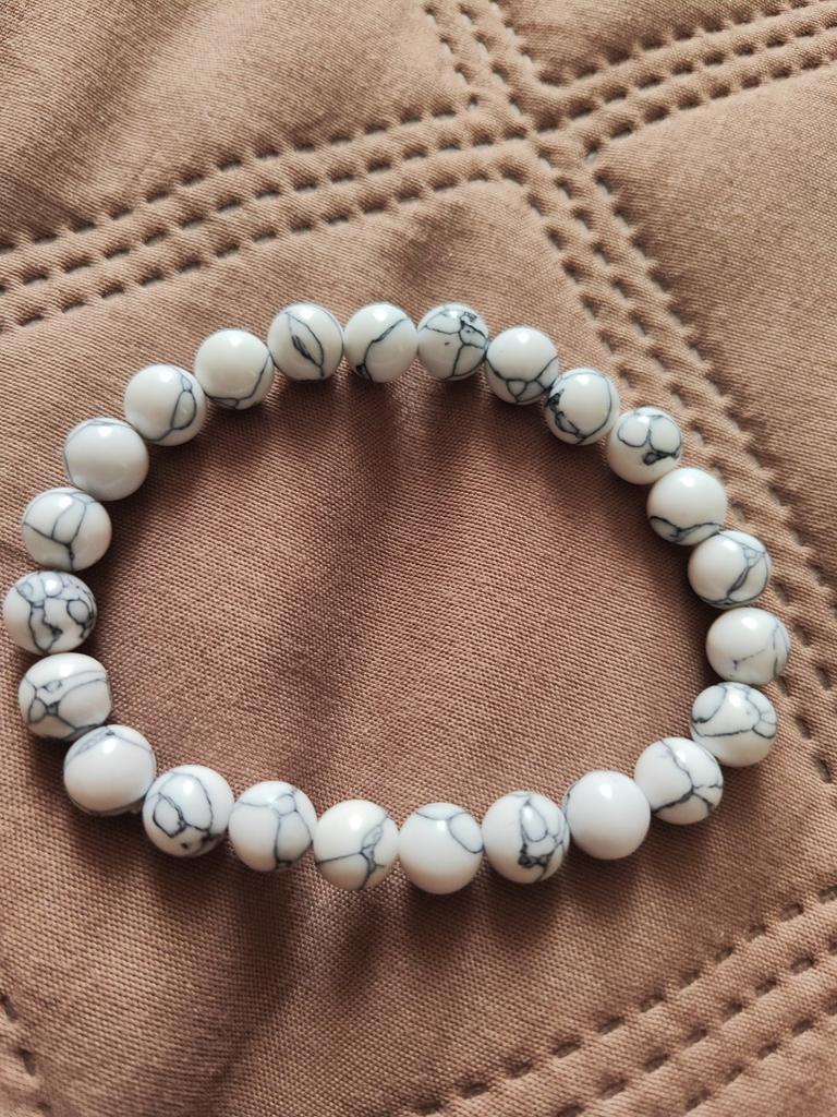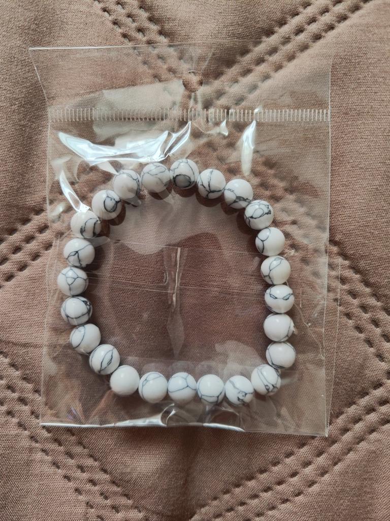 ✔️Bransoletka z kamienia ✔️Biały turkus ✔️Kolejny w mojej kolekcji ✔️Nawleczony na elastyczną żyłkę ✔️Na mój nadgarstek 16cm, świetnie, lekko luźne ✔️ Odpowiada zdjęciu promocyjnemu ✔️Wizualnie pokazane na zdjęciu i opowiedziane w filmie 😊Jestem zadowolona😊 i polecam tym, którym się podoba