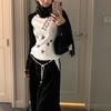 T-shirt z odwróconym kołnierzem samochodowym w stylu Harajuku w kontrastowym kolorze, z błyszczącym nadrukiem w gwiazdki, ze spersonalizowaną i wszechstronną górą z długimi rękawami i mikro rozkloszowanymi rękawami
