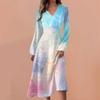 Damskie wiosenne i jesienne modne, codzienne sukienki z dekoltem w kształcie litery V, długim rękawem i gradientowym nadrukiem