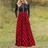 Damska sukienka maxi w kratę z długim rękawem i talią, z kieszeniami