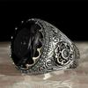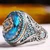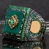 Inkrustowany szmaragdowy męski luksusowy pierścionek osobowość Retro dominujący klejnot pierścionek z szafirem, aby wziąć udział w przyjęciu bankietowym biżuteria biznesowa