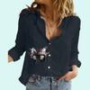 Koszula damska z nadrukiem motyla, zapinana na guziki, modna na wiosnę i jesień, z długim rękawem, lniana, damska, bluzka z długim rękawem