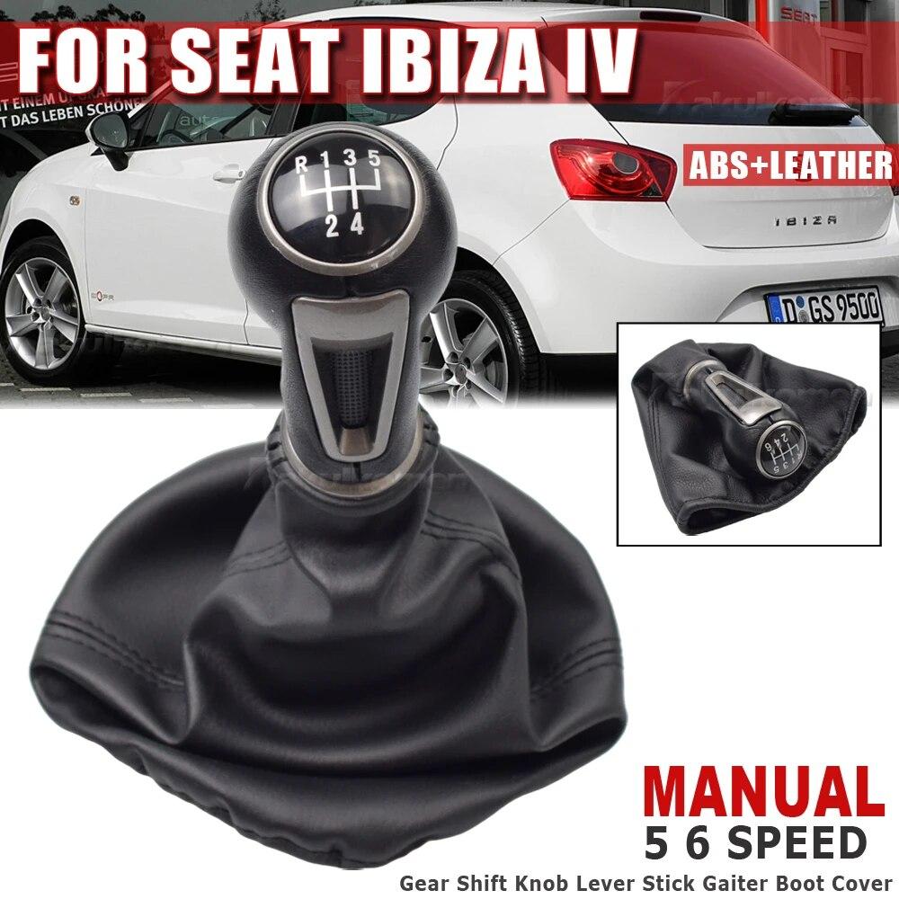 Gałka zmiany biegów do SEAT IBIZA IV Manualna 5-biegowa 6-biegowa gałka zmiany biegów dźwignia zmiany biegów z czarną skórzaną osłoną bagażnika