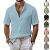Męska letnia, jednokolorowa, bawełniana i lniana koszula z krótkim rękawem, moda codzienna, luźna koszula z klapami