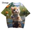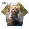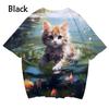 New 3D printed women's T-shirt with cute cat enthusiast pattern T-shirt casual round neck short sleeved large T-shirt top