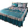 3 szt. Zestaw nowoczesny królewski niebieski narzuta fajny falbanka na ramę łóżka prześcieradła można prać w pralce łóżko z gumką dla królowej duży rozmiar