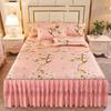 3 sztuk/partia podwójne prześcieradło zestaw klasyczny koronkowy królewski niebieski prześcieradło falbanka na ramę łóżka, można prać w pralce narzuta ślubna pokrycie materaca