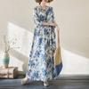Johnature Sukienka damska w stylu vintage z długimi rękawami i nadrukiem w stylu chińskim, luźna, z okrągłym dekoltem i nadrukiem