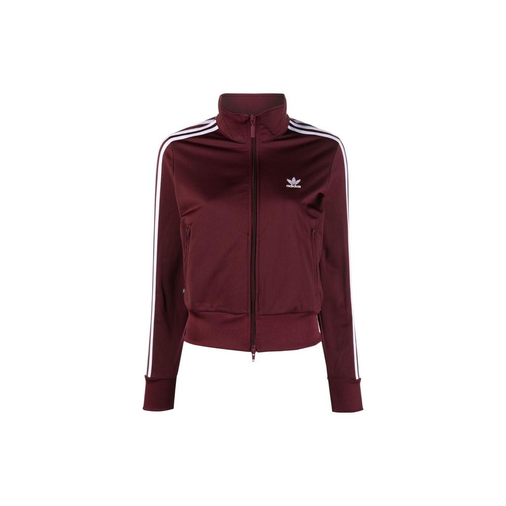 Adidas Logo Stripe High Collar Zip Jacket Women Outerwear Burgundy IB7406