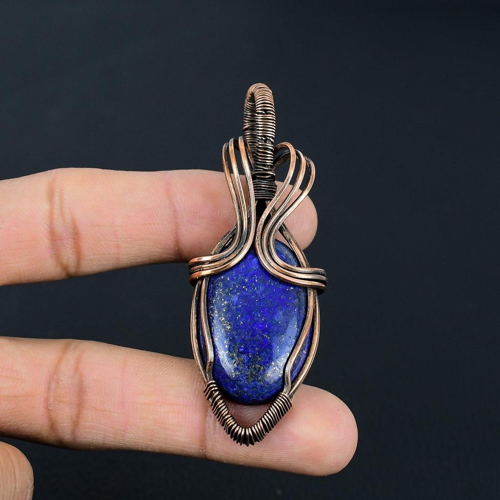 Lapis Lazuli Kamień Szlachetny Ręcznie Robiony Czysty Drut Miedziany Oprawiony Biżuteria Wisiorek Dla Kobiet