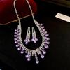 3 sztuki/zestaw naszyjnik kolczyki zestaw błyszczący kryształ górski geometryczny frędzel wysoki połysk dekoracja hipoalergiczny różowy