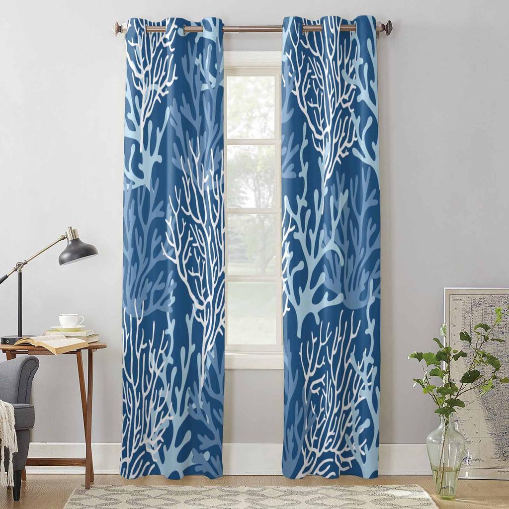 Letnie Oceaniczne Koralowe Ciemnoniebieskie Zasłony Okienne do Salonu Luksusowa Zasłona do Sypialni Żaluzje Kuchenne Draperie Zasłony