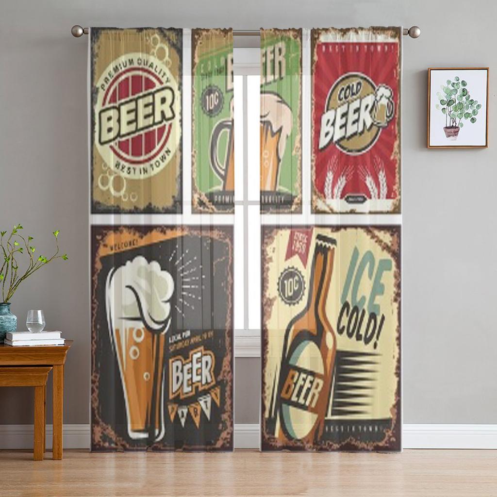 Zestaw Retro Szyldów Piwnych Tiulowe Przezroczyste Zasłony Okienne Do Salonu Sypialni Nowoczesne Szyfonowe Woalowe Organzowe Zasłony Dekoracyjne