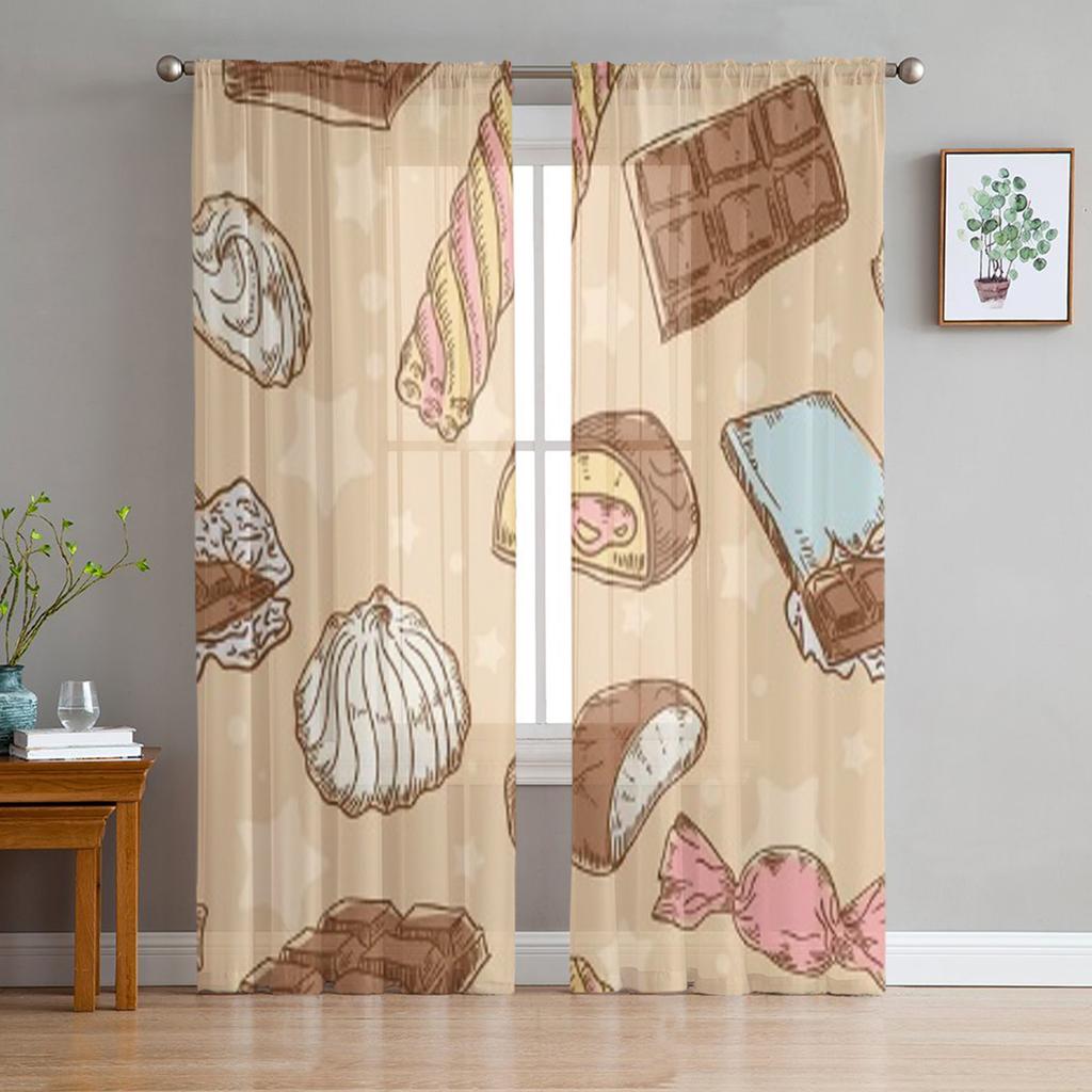 Vintage Słodycze Cukierki Batony Czekoladowe I Marshmallow Przezroczyste Zasłony do Salonu Tiulowa Zasłona Okienna Sypialnia Kuchnia Zasłony