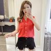 Luźna, jednokolorowa, luźna koszula bez rękawów z dużą kieszenią dla kobiet, prosta i świeża kamizelka z dekoltem w serek