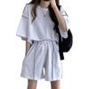 funkcje: Zestaw spodenek T-shirt ma okrągły dekolt, pół rękawy, jednolity kolor, elastyczną talię ze sznurkiem, luźny krój i fasony w stylu casual.