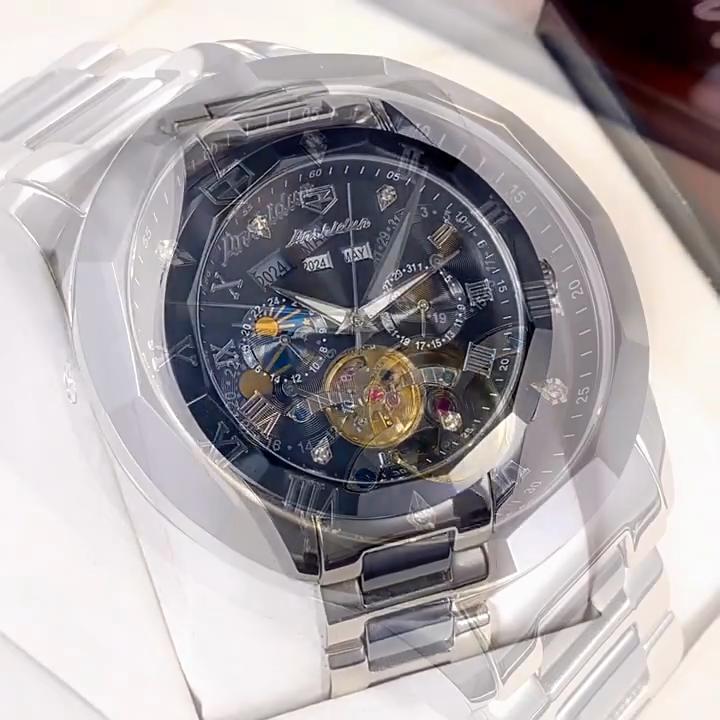 JINSHIDUN Wielofunkcyjny zegarek męski. Trend męski z podwójnym kalendarzem. Ceramiczny wodoodporny automatyczny zegarek mechaniczny