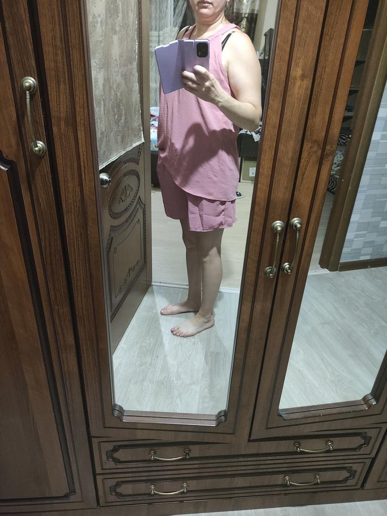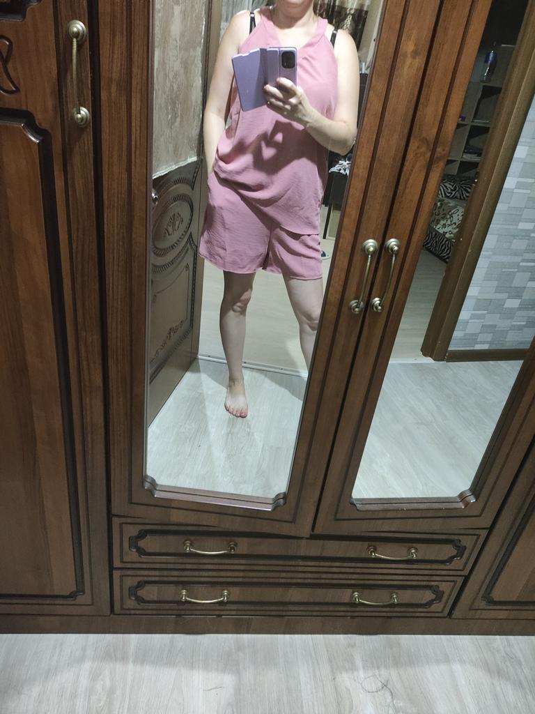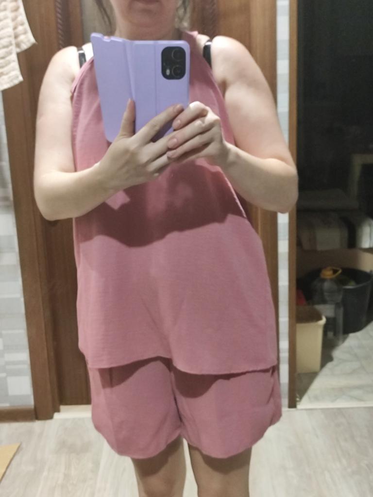 Na mój rozmiar 46 z 3 numerem biustu jest trochę za duży, tkanina przyjemna, ale dolne wykończenie koszulki i szortów jest bardzo słabe, zbytnio się rozciąga. Stan szortów jest bardzo wysoki.