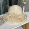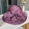 Eleganckie modne damskie kapelusze kościelne dla kobiet z dużą kokardą kwiatową, letni kapelusz chroniący przed słońcem, ślubny, z szerokim rondem, oddychający, morski, plażowy