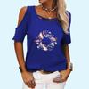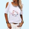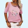 Damska koszulka z okrągłym kołnierzykiem, letnia i jesienna, z nadrukiem, z krótkim rękawem, z odkrytymi ramionami