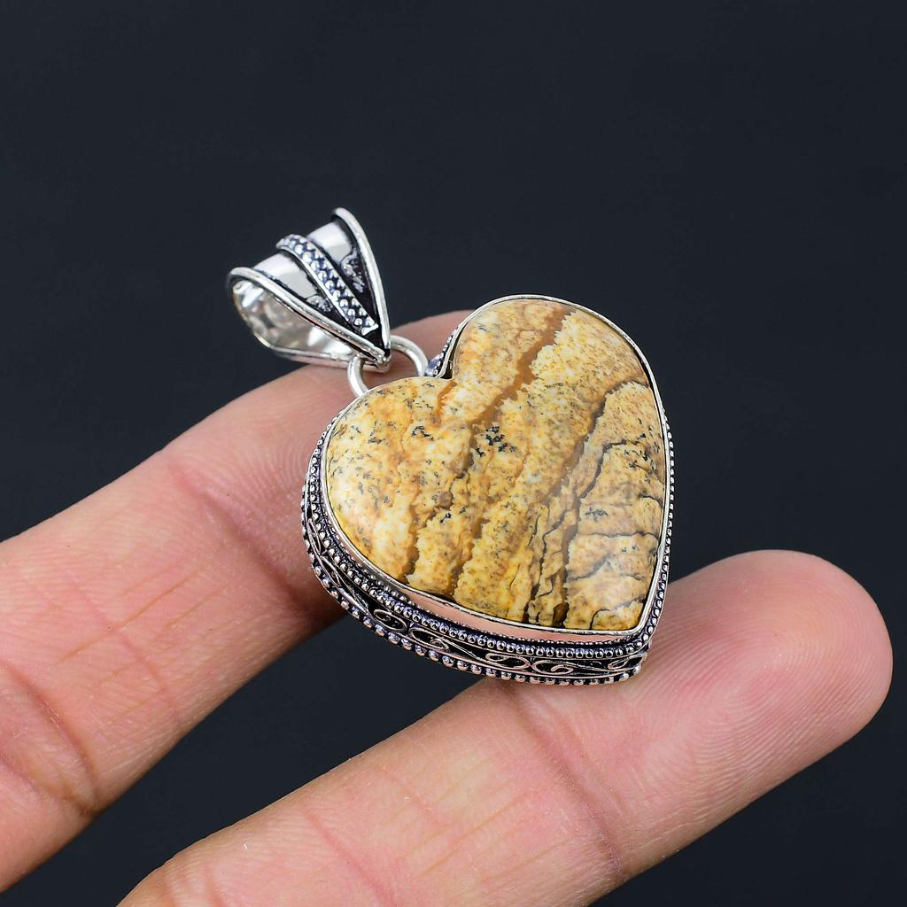 Picture Jasper Gemstone Pendant Solid 925 Sterling Silver Pendant Jewelry Gift For Unisex LG-038