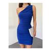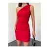 Damska sukienka mini na jedno ramię, marszczona, szczegółowa