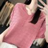 Women's Summer T-shirt Loose Casual Short Sleeve Solid Color Loose Ice Silk Knit Top