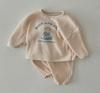 Wiosna Jesień Zestaw Ubrań Dziecięcych Chłopiec Dziewczynka Niemowlę Wafel Kreskówka Długi Rękaw Bluzki+Gładkie Spodnie 2szt Dzieci Nadruk Liter T-shirt Garnitur