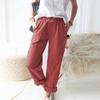 Damskie solidne bawełniane lniane spodnie z elastyczną talią Casual proste spodnie długie spodnie