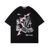 Modny T-shirt z krótkim rękawem z nadrukiem linii z kreskówki anime, męski i damski, luźny, casualowy, z czystej bawełny, z krótkim rękawem, na lato