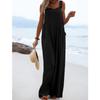 Letni damski kombinezon bez rękawów luźny swobodny szeroki nogawka guzik modny etniczny styl kombinezon