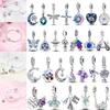 Nowe Srebro Próby 925 Niebieskie Oko Motyla Kolorowa Paleta Księżyc Serce Wiszące Kwiatek Koralik DIY Pasuje do Oryginalnej Bransoletki z Charmsami Biżuteria