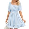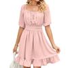 Letnie damskie sukienki w jednolitym kolorze z kwadratowym dekoltem, krótkim rękawem, luźne, z wiązaniem na plecach