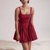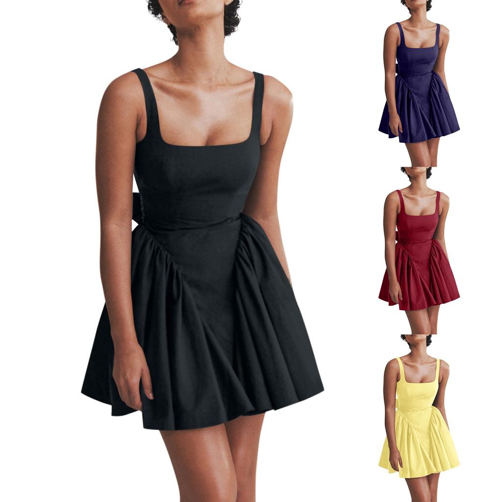 Women's Fashion Solid Color Butterfly Knot Open Back Sleeveless Dress