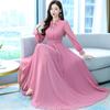 Sukienka z długim rękawem, wyszczuplająca talię, długa spódnica z szyfonu, jednokolorowa spódnica