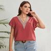 Letnia koszula damska plus size z koronką, dekolt V, luźna, z krótkim rękawem