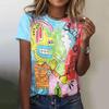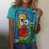Letni damski T-shirt Abstrakcyjny kreskówkowy nadruk T-shirt Harajuku Vintage Krótkorękawowy z okrągłym dekoltem Top Oversize Odzież z damskim designem