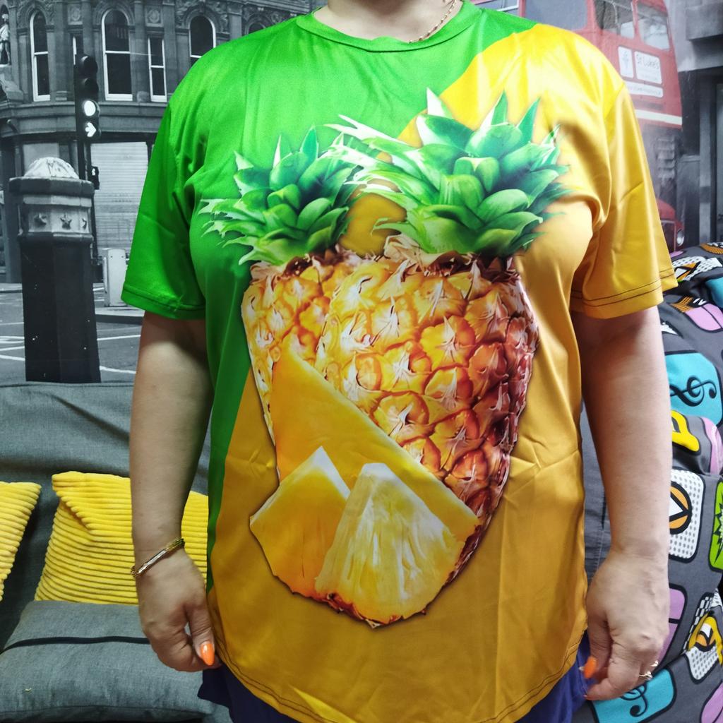 T-shirt z nadrukiem owoców Damska letnia koszulka z okrągłym dekoltem Modna, luźna koszulka 3D Eleganckie, ponadgabarytowe topy z krótkim rękawem Projektowanie odzieży