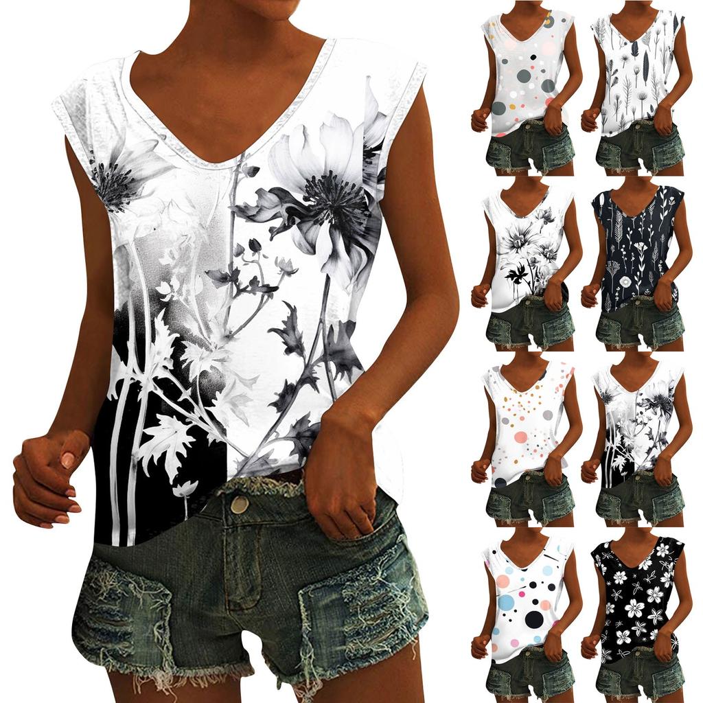Damska luźna bluzka z krótkim rękawem i dekoltem w serek