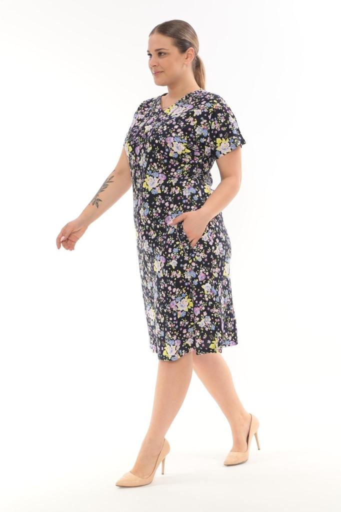 Floral Patterned Button Detailed Combed Cotton Modal Dress.