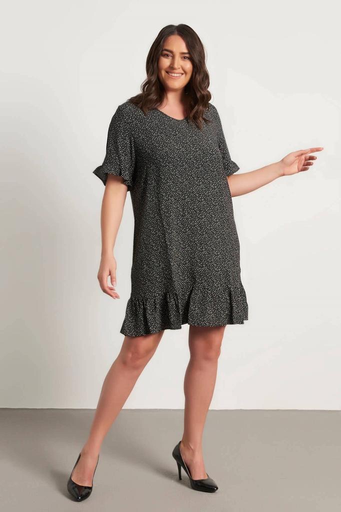 Uwaga: Rozmiary modeli są nieco szersze niż znane rozmiary. Rysunek wzoru: Typ kołnierza wzorzystego: V - Długość rękawa kołnierza: 34 wzory rękawów: Wygodna długość: Grubość powyżej kolana: Cienkie szczegóły produktu: Tkanina falbaniasta: Tkanina Zawartość tkaniny: Długość produktu 100% wiskoza: Wymiary modelu 95 cm: wzrost: 180cm , Klatka piersiowa: 100cm, Talia: 84 cm, biodra: Rozmiar próbki 117 cm: 44.