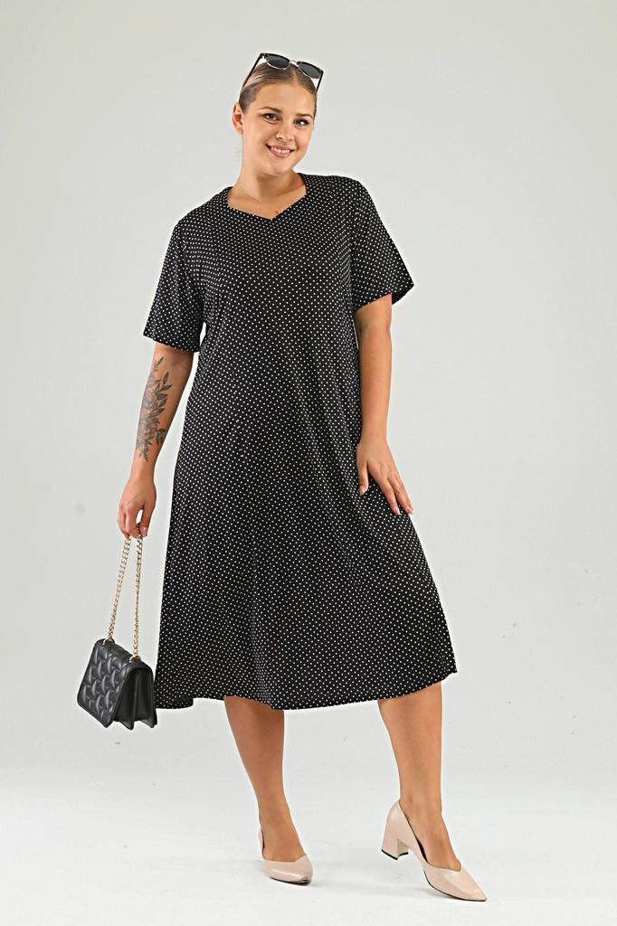 Damska sukienka plus size w kropki i panterkę, wykonana z wiskozy..