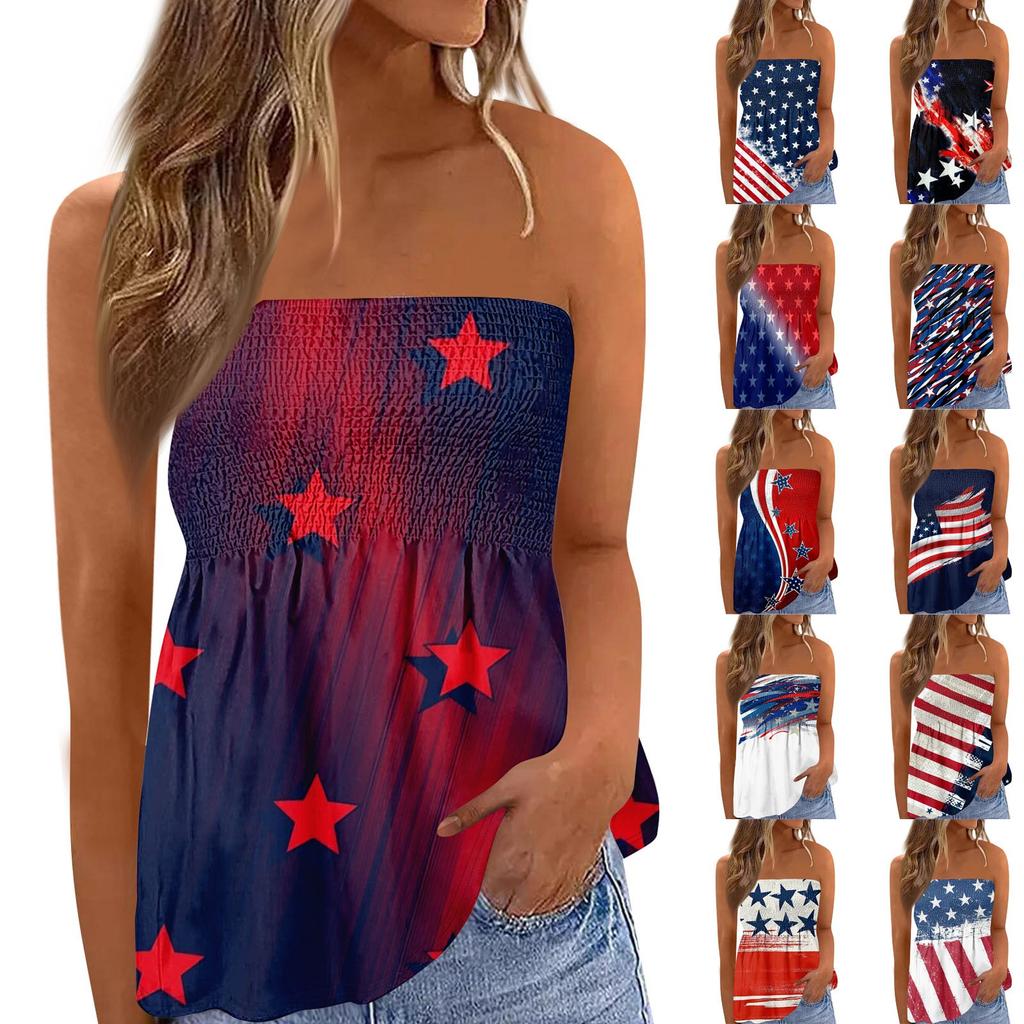 Topy tubowe dla kobiet, słodka seksowna koszulka bez rękawów z odkrytymi ramionami i nadrukiem Dnia Niepodległości