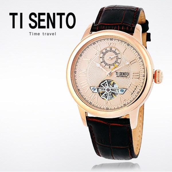 [Ticento]Men’s Automatic Leather Watch TS50041RGCH_DUAL, Korean Luxury Watches