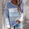 Damski sweter z kapturem, lekki, dzianinowy, z długim rękawem, w paski, bluza z kapturem