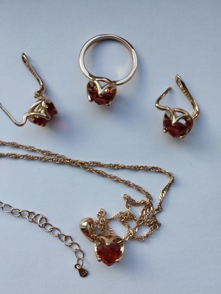 Bardzo piękny komplet. Dzięki jaskrawoczerwonemu kamieniowi jest po prostu szykowny. To, czego chciałam. Do nich wzięłam jeszcze łańcuszek z wisiorkiem. Teraz jest bardzo piękny krwistoczerwony komplet