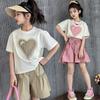 Letnie zestawy odzieży dziecięcej dla dziewczynek T-shirt z nadrukiem + spódnice 2 szt.