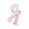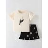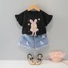 Projekt: Okrągły dekolt, frędzlowy dół, nadruk w kształcie króliczka, koszula z krótkim rękawem, uroczy króliczek i spodnie w kwiatowy wzór – ten strój sprawi, że Twoja mała księżniczka będzie ładniejsza.